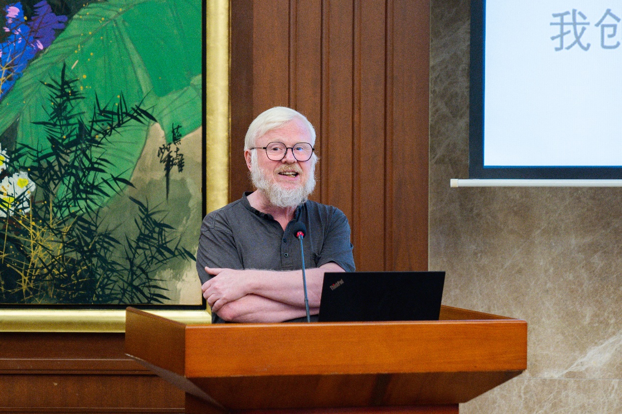 在专家讲座环节,一中一西两位权威专家带来了两场精彩的学术盛宴。来自华东师范大学中文系的朱志荣教授以《从选题、研究方法与学术写作看当代汉学》为题,把学术研究的三个大问题“选题”、“研究方法”、“论文写作”浓缩在四十分钟的讲座中,为即将进入博士研究生涯的同学们上了一堂兼具理论高度与实践价值的大课。