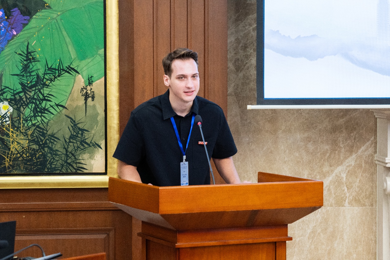 “新汉学计划” 博士生项目新生代表、复旦大学2025级来华博士生白哲翔(Baravik Mikita)2019年第一次来到中国,就明确了自己未来的研究方向就是中国诗歌。热爱带领他不断前进,他大量翻译中国古今诗作,已出版两本译著,并用中文创作诗歌,不断加深对中国诗歌内涵的领悟和对中国文学的整体认知。他理解的“汉学”从来不是单向的文化输出,而是中外交流的核心基础。他以“互学互鉴、拓宽视野”与各位同学互勉。