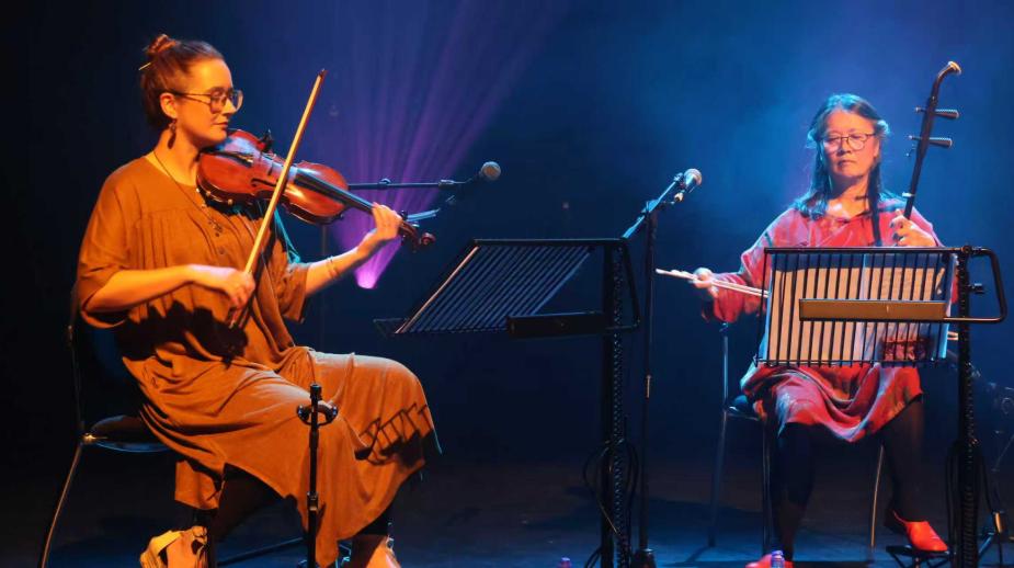 在《小河淌水》中,演奏家彭玲与小提琴手 Ruth Angell以错拍编排的合唱模式将贵州山歌的青涩浪漫演绎得淋漓尽致。压轴曲《翻身道情》融合了《康定情歌》片段,二胡与小提琴的合作为夜晚画下既具文化深度又温暖人心的句号。