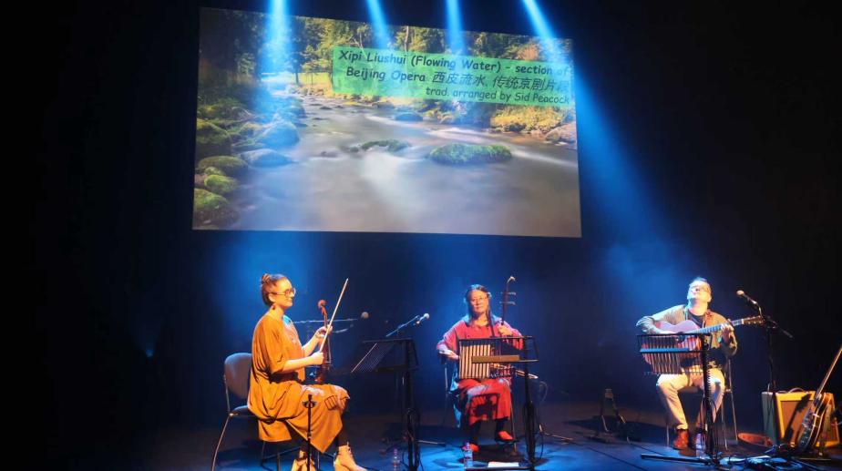 音乐会以《西皮流水》拉开序幕。吉他手 Sid Peacock 幽默介绍中国戏曲,瞬间活跃现场氛围,开启跨文化音乐对话。开场致辞由诺丁汉大学可信研究中心主任杰森·菲利(Jason Feehily)发表,他向到场观众致谢并祝愿音乐会圆满成功。