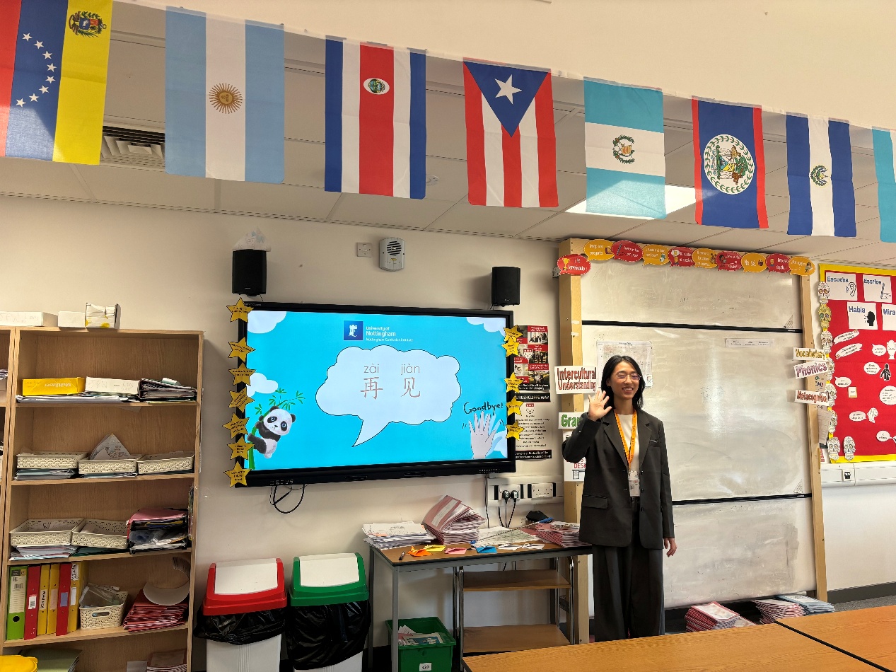 2025年9月26日上午,诺丁汉大学孔子学院两位教师应邀走进当地拉什克利夫中学(Rushcliffe Spencer Academy)的“Bright Day”课堂,为3个班级近100名中学生带来了一场别开生面的汉语体验课程。