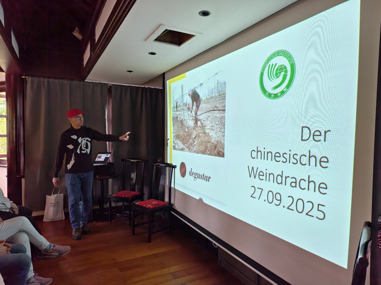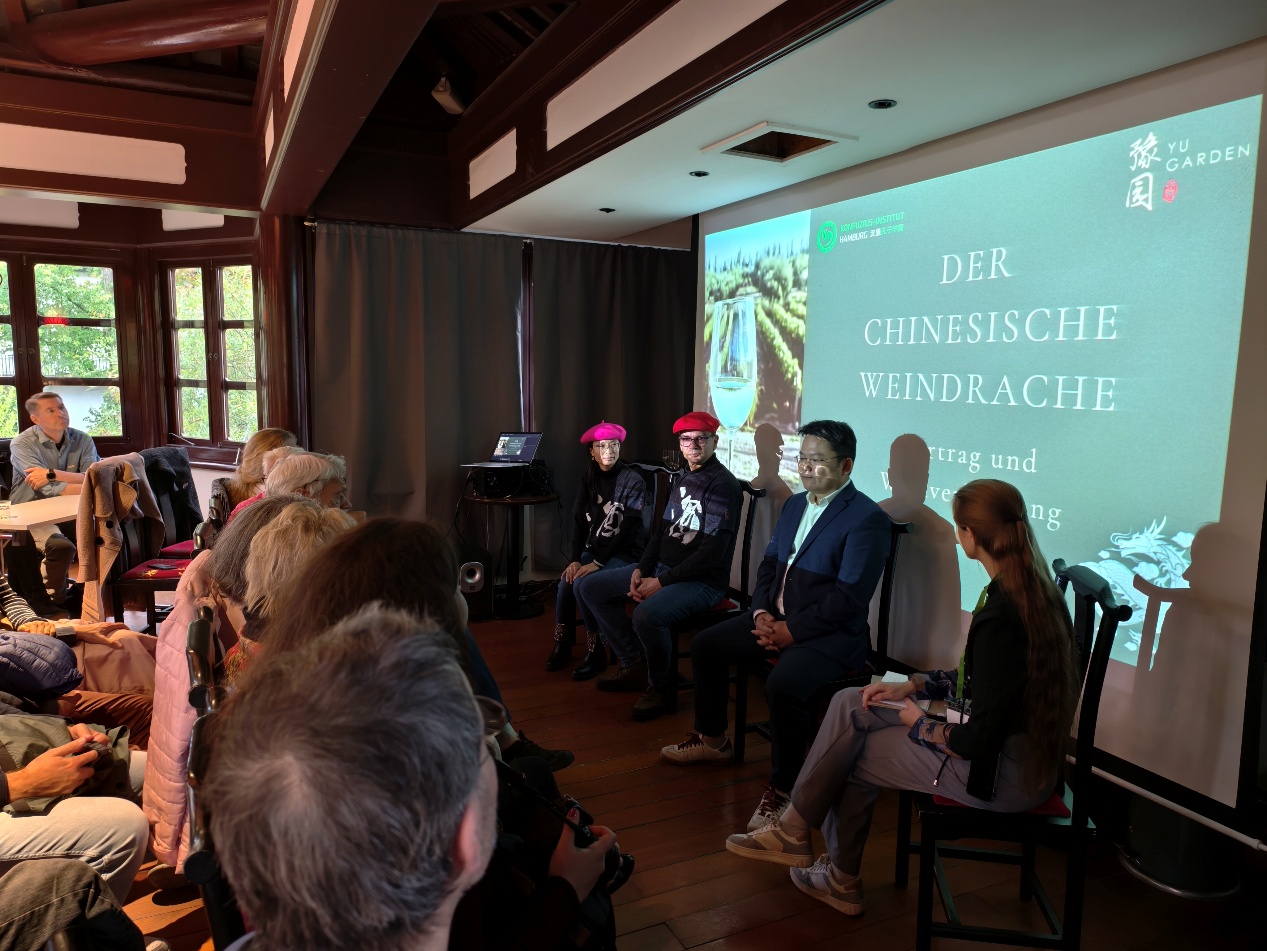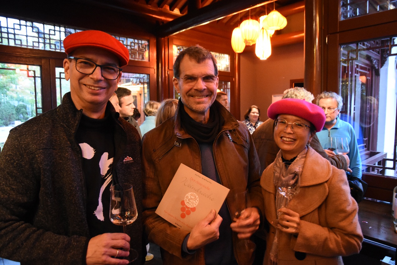 9月27日,约50位嘉宾齐聚汉堡豫园,共同探讨一个似乎鲜少与中国联系在一起的话题——葡萄酒(wine)。活动的契机来自于由吴小妹(Wsana Woo)与约尔格·菲利普(Jörg Philipp)合著的新书《中国葡萄酒之龙》(Der chinesische Weindrache)。汉堡孔子学院特邀两位作者来到豫园,与大家面对面交流。