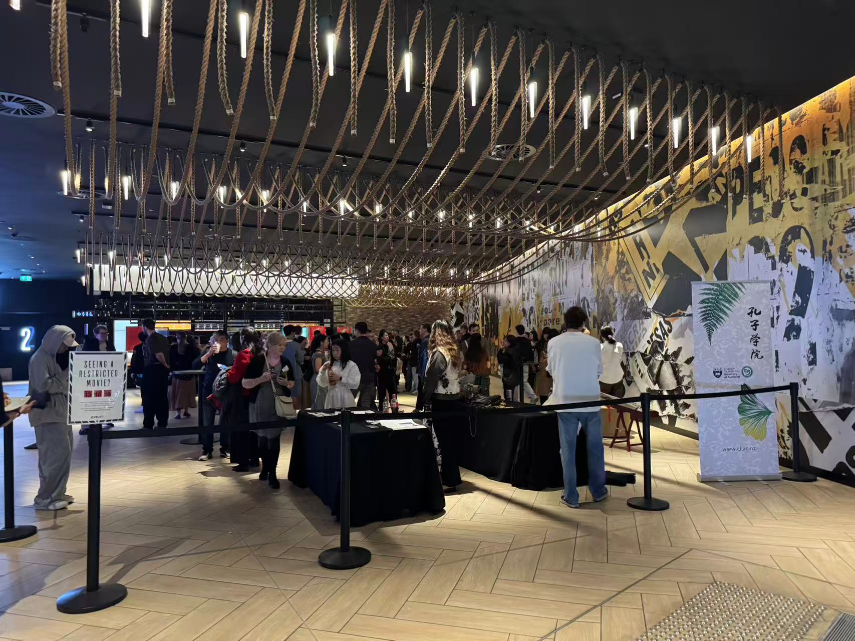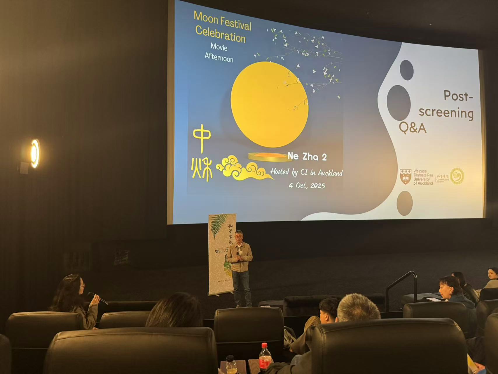 新西兰当地时间 10 月 4 日,为迎接中国传统中秋佳节的到来,奥克兰孔子学院在 New Market 影院精心打造了一场以《哪吒2》为核心的文化观影活动。活动前期,孔院团队通过学校社群等多渠道宣传,吸引了奥克兰地区大中小学的师生代表及本地中国文化爱好者共计 200 余人到场,现场氛围浓厚,用独特的方式共庆中秋佳节,搭建起跨文化交流的温暖桥梁。