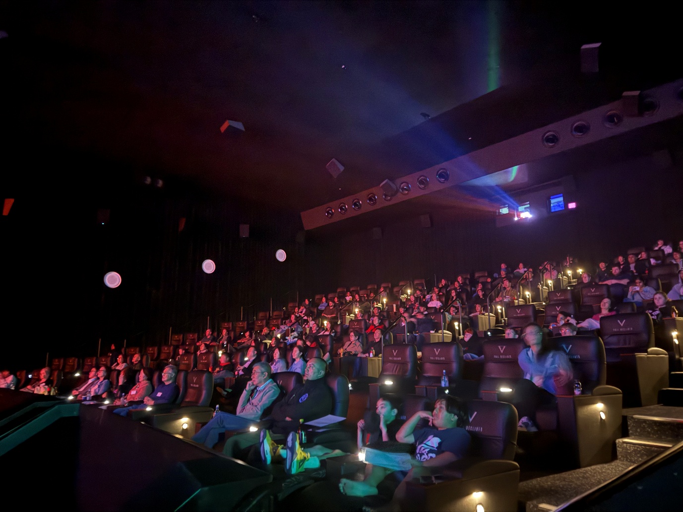活动当日,影院内处处洋溢着浓厚的节日氛围。下午一点半,观众们陆续抵达签到,伴随着古筝的旋律,观众们相互致以节日问候,品尝美食,让在场者瞬间感受到中秋的文化底蕴与团圆温情。下午两点十五分,随着灯光渐暗,《哪吒2》中鲜明的中国神话元素、热血的成长故事,以及 “不信命、敢突破” 的精神内核,迅速抓住了观众的注意力。现场时而因紧张的剧情陷入安静,时而因幽默的片段响起阵阵笑声。