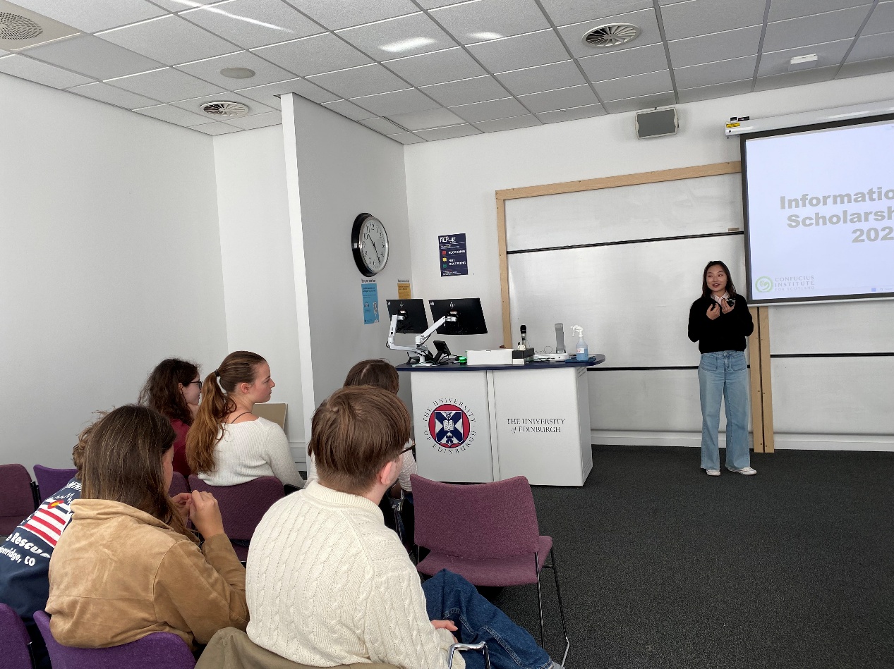 开学第一周,苏格兰孔子学院在爱丁堡大学向中文专业学生推介国际中文教师奖学金项目。