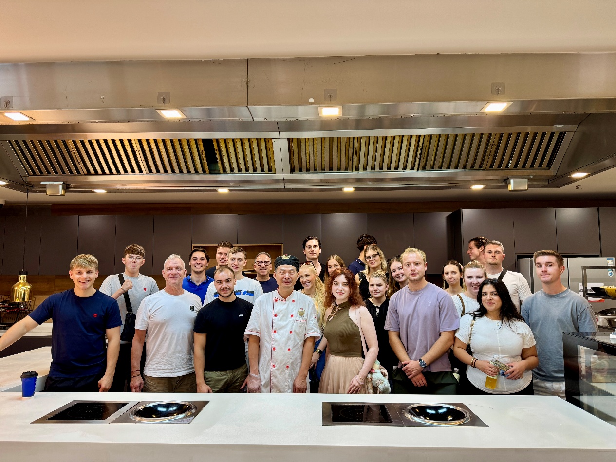 之后,学生们参与了一场充满烟火气的中国烹饪体验活动,沉浸式感受中国美食文化的独特魅力。大家分组协作,在大厨的耐心指导下亲手制作了宫保鸡丁、沸腾鱼片、麻婆豆腐等特色中国菜肴,体悟中国饮食文化的博大精深。