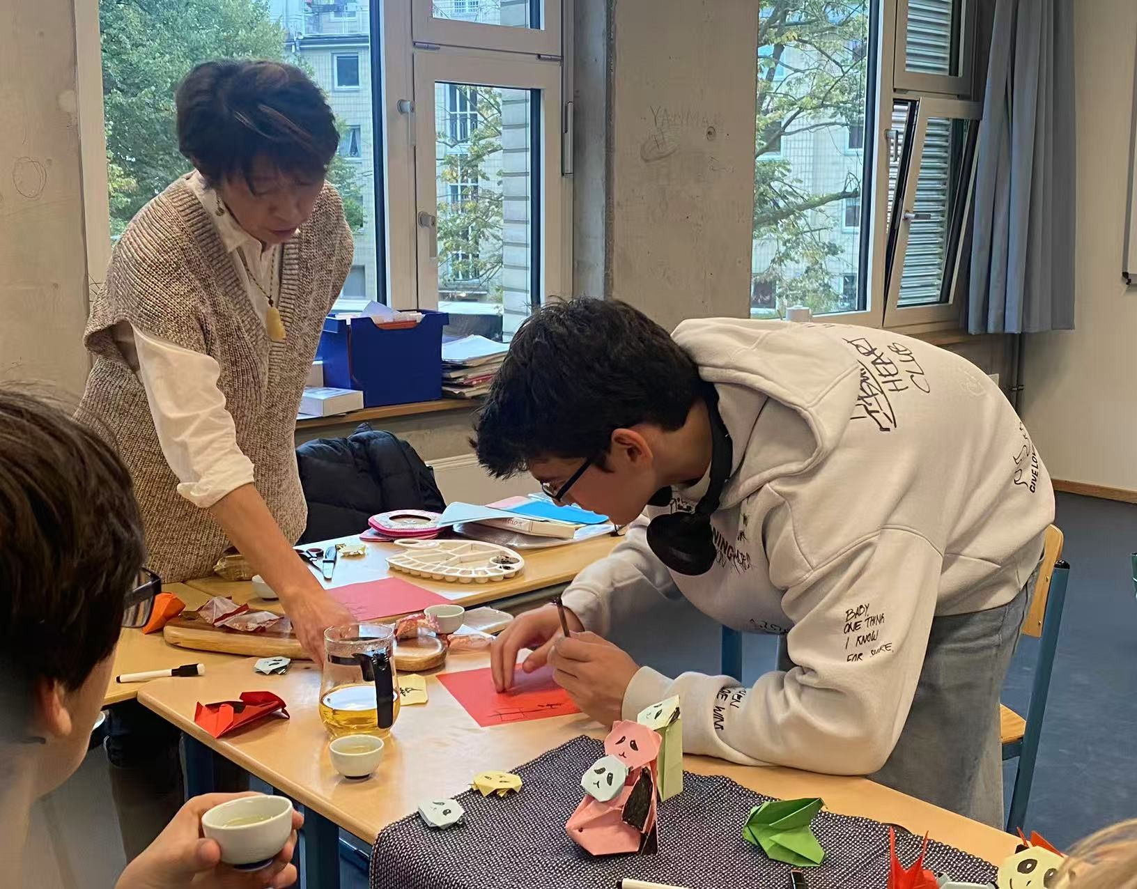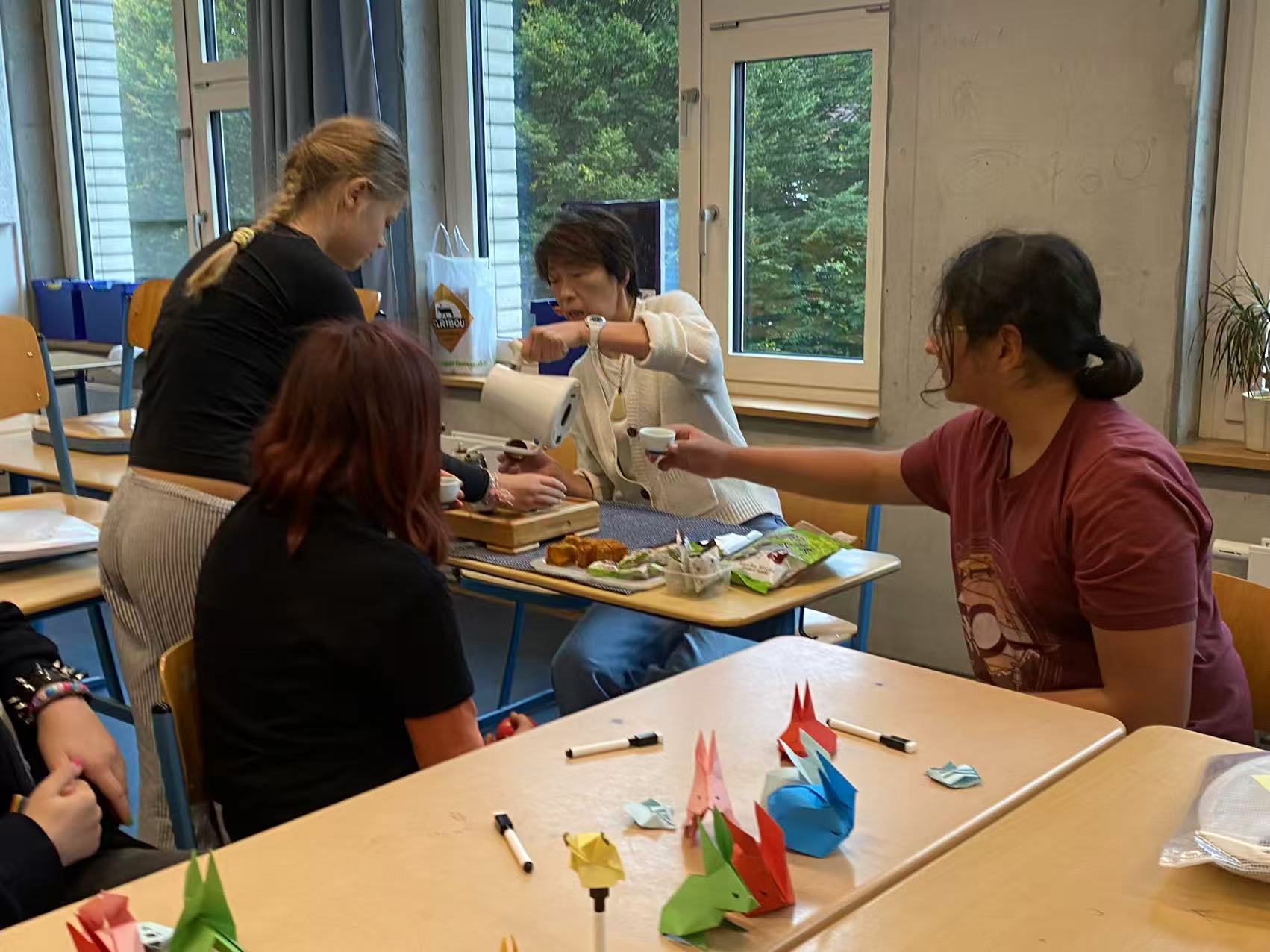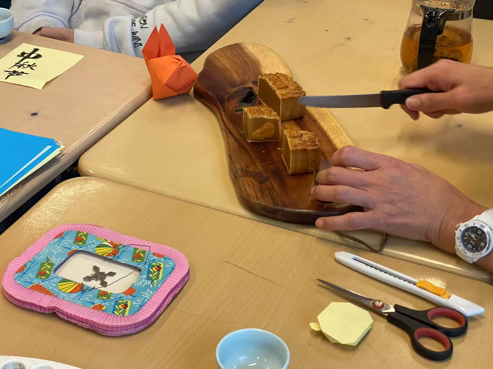 除了动手做手工,师生还一起品尝了节日茶点。可口的豆沙、莲蓉、五仁月饼搭配一杯清香的中国茶,节日的味道在舌尖蔓延。老师借机讲解了中国茶文化和各种茶叶的制作过程,学生们纷纷表示,这样的文化课堂让他们更深刻地理解了中秋节“团圆与祝福”的意义,也让学习汉语变得更加生动有趣。