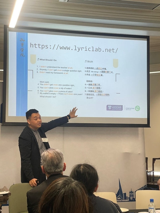 奥克兰孔子学院公派教师王宇带来"AI技术赋能国际中文教育"专题分享,结合具体教学场景演示了人工智能在中文教学中的创新应用。他介绍的AI口语陪练系统可模拟真实对话场景,解决学生课后口语练习缺失的问题;运用AI工具生成功能则可快速制作适配不同学段的练习和游戏,大幅提升教学备课效率。St Peter’s College的张冰妹老师为大家详细介绍了KIWI HANYU网站,为老师们在教学中提供了教学资源支持。