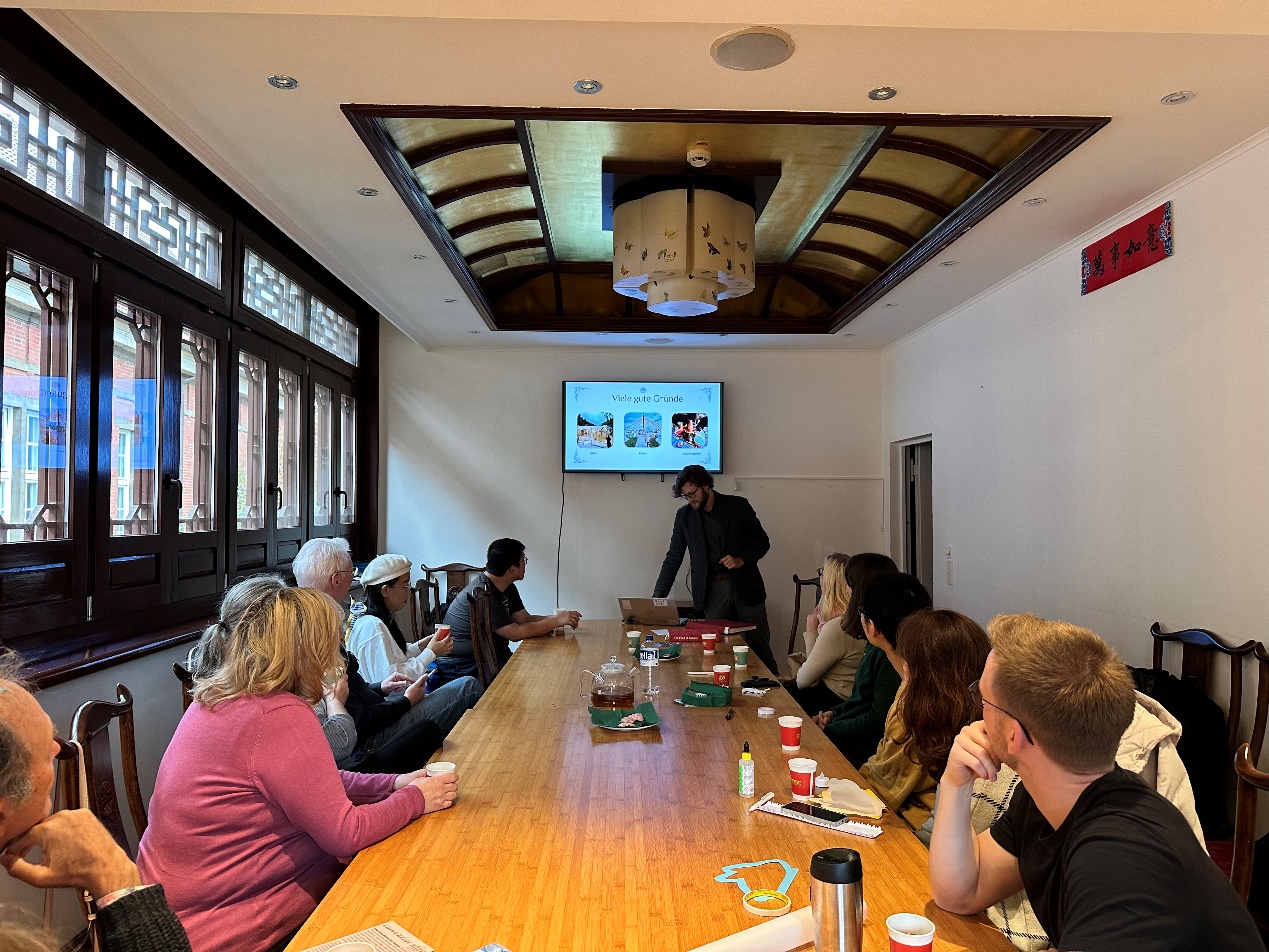 手工坊结束后,“中国旅行主题分享会”接棒登场。本次分享由汉堡孔子学院与汉堡中国学联联合主办。五位分享嘉宾带来的“多元中国故事”,让现场观众听得入迷。从四川乡村的田园风光、地道川菜的热辣滋味,到北京汉语课堂的趣味互动、文化研学的独特体验;从中国医院的工作日常、专业医疗的严谨细致,到新疆的壮美风光、浓郁的民族风情,再到汉堡孔院体验中国之旅的精彩瞬间,嘉宾们用亲身经历勾勒出立体、鲜活的中国形象。台下观众倾听时点头附和,互动时踊跃举手:有人询问乡村旅行的路线规划,有人打探汉语研学项目的报名方式,满是对中国的向往与期待。