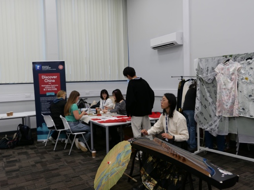 11月26日,诺丁汉大学孔子学院在Park校区冬季多样文化展中设置了三个特色展位——“汉服试穿拍照”“古筝演奏欣赏”“中文名推荐与书法体验”,吸引众多师生驻足参与,现场氛围热烈而温馨。