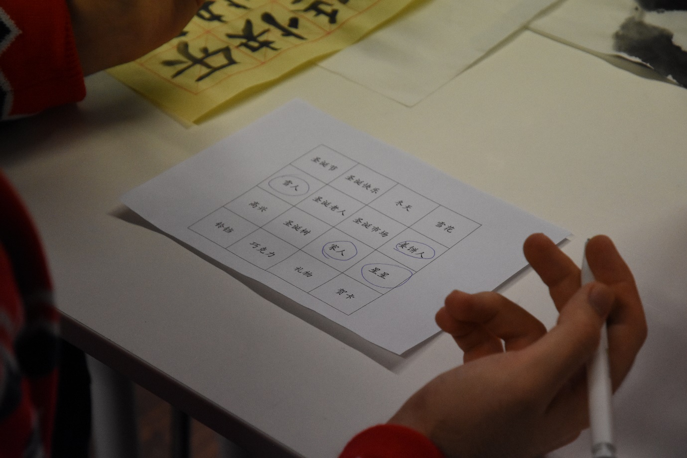 随后,老师带领大家学习了与圣诞节相关的中文词汇,并通过图片和互动问答的方式,加深学生们对词汇含义和用法的理解。新学的词汇可是马上就要在接下来的游戏中用到呢。学生积极参与Bingo和Memory游戏、在轻松竞争的氛围里巩固了所学内容,也拉近了彼此之间的距离。现场欢笑声不断,将气氛一次次推向高潮。