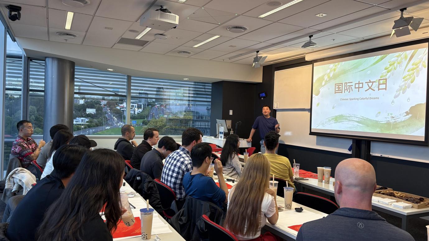 为庆祝第十七个“联合国中文日”暨中文列为联合国官方语言80周年,奥克兰孔子学院组织开展多场庆祝活动。云端献礼,传递中文教育者心声奥克兰孔子学院国际中文教育志愿者与教师们录制祝福视频,在初秋时节的新西兰向全球中文学习者致以节日问候。身处不同孔子课堂和教学点的他们,共同点亮中文梦想。老师们一致表达了对国际中文教育事业的热忱与信念,当学生用中文问候、爱上中文课时,他们深刻感受到语言教学的意义。以中文为桥,传递跨越国界的友谊与温暖。 笔墨体验,融合科技感受汉字之美当地时间4月14日,奥克兰孔子学院举办“汉字与科技—用人工智能书写中文之美”主题语言文化体验活动,20余名师生参加,活动现场气氛热烈。孔院王宇老师介绍了国际中文日的由来与意义,讲解了人工智能技术在汉字书写与中文学习中的创新应用,为学生们提供了多样化的学习思路与方法。大家现场书写“我爱中文”“国际中文日”等词句,在笔墨间感受汉字的结构之美与文化内涵。本次活动将人工智能技术与传统书法体验相结合,探索语言文化与现代科技的融合路径。多方联动,共庆国际中文日奥克兰孔子学院参加中央广播电视总台“魅力中文”联合国中文日活动,孔院师生共同观看总台《中
