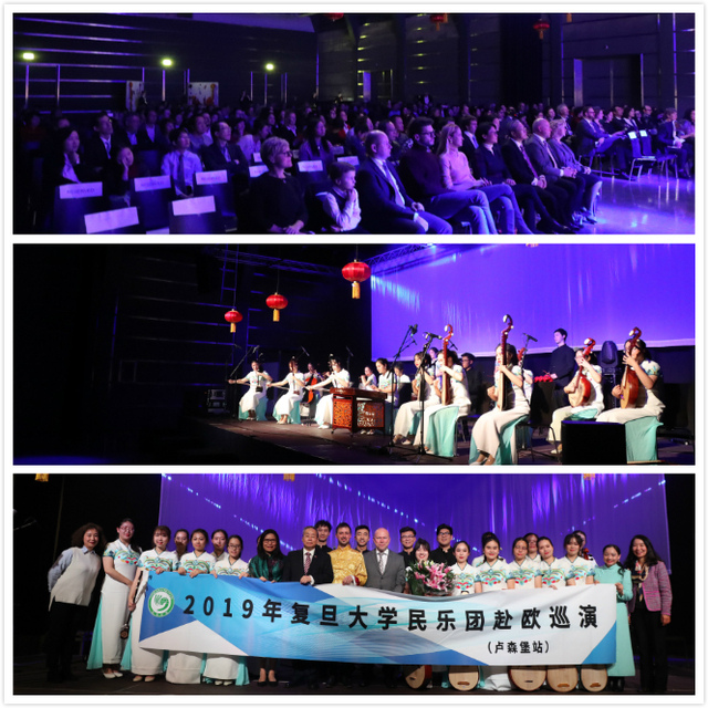 1月27日晚,卢森堡大学孔子学院新春庆祝系列活动之--“复旦之音”新年音乐会在卢森堡市Tramsschapp文化中心举办。卢森堡大学校长Stéphane Pallage、中国驻卢森堡大公国大使黄长庆先生、中卢商会主席谢竹君女士出席了音乐会,并作了新年致辞。音乐会在欢乐氛围中进行,节奏流畅,高潮迭起。民乐团最后的合奏《步步高》以荡气回肠的唢呐吹奏将整场音乐会推向高潮。黄长庆大使、卢森堡大学孔子学院中外方院长朱伟与白泽义对民乐团的精彩演出表示了高度的肯定与感谢,希望我校民乐团日后再赴卢森堡,让更多的卢森堡人感受中国音乐和复旦的魅力。
