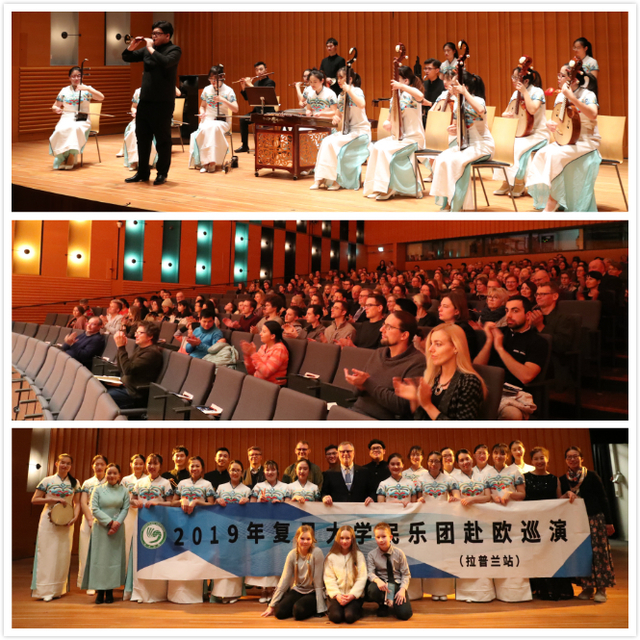 受芬兰拉普兰大学邀请,我校民乐团于1月25日晚在罗瓦涅米市的Korundi音乐厅,为当地民众献上了一场主题为“弦歌卿云”的音乐会。罗瓦涅米市仅有6万多人口,而当晚340人的音乐厅内人头攒动,掌声如雷,当晚的室外温度低达零下20℃,音乐厅内却温暖如春。观众们深深地被中国传统音乐的优雅、独特所吸引,当地华人也纷纷向民乐团表达了肯定与感谢,在遥远的他乡感受到了浓浓的新年气氛。罗瓦涅米市长Esko Lotvonen先生、拉普兰大学校长Mauri Yla-Kotola先生、芬兰总统访华时的随行翻译Mikko Puustinen先生、拉普兰大学中国问题专家Matti Nojonen教授等出席了音乐会,对我校民乐团的表演给予了高度的赞扬。此外,民乐团还在拉普兰大学、咖啡馆进行了“快闪”活动,以时尚活泼的方式,吸引当地民众对中国民乐的了解与认识;随后,我校民乐团学生与拉普兰大学中文班的学生进行了面对面的交流互动,相距7300多公里的两国年轻人通过音乐拉近了彼此的距离。