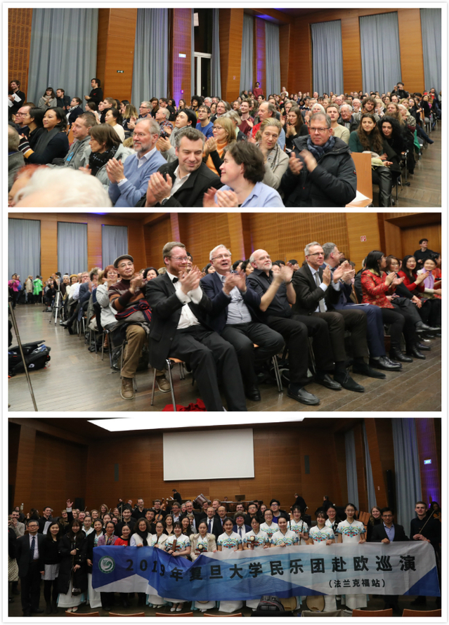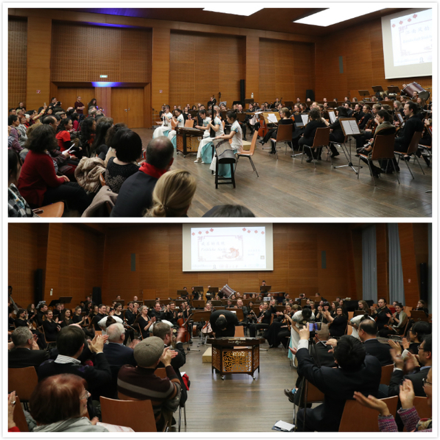 30日晚,我校民乐团与法兰克福大学交响乐团同台演出,共同演绎了一场中西合璧的新年音乐会。音乐会开始之前,法兰克福大学副校长Rolf van Dick、我校副校长陈志敏分别致辞,对两校日益密切的合作与交流做了充分肯定与期许。出席音乐会的还有中国驻法兰克福总领馆孙从彬总领事、德国黑森州经济能源交通与发展部副部长Norbert Noisser先生、法兰克福大学孔子学院理事长杨治宜教授、法兰克福大学经济学家Rainer Klump教授、法兰克福大学国际事务部主任Rebekka Göhring博士等。音乐无国界,此次音乐会吸引了600多名观众,法兰克福大学交响乐团与我校民乐团的演出交相辉映,共同谱写新春音乐新篇,为现场观众呈现一场完美融合的视听盛宴。