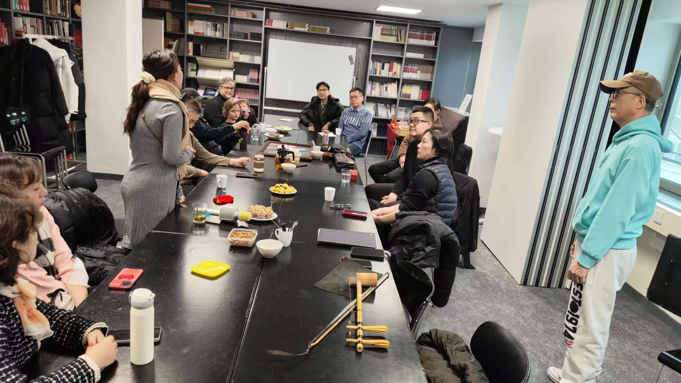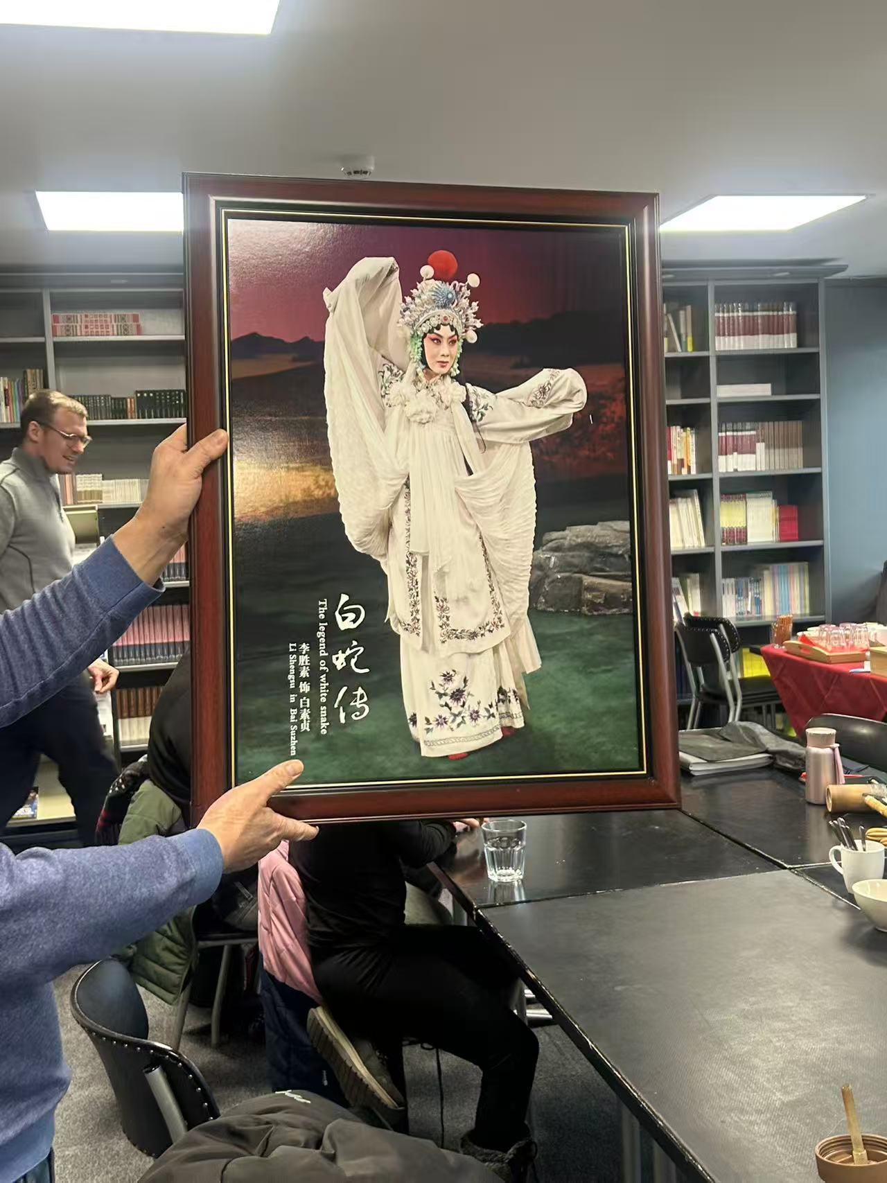 彩排表演结束后, 本雅明(Benjamin Winter)先生代表法兰克福孔子学院, 将著名京剧演员李胜素的演出剧照赠予德国京剧协会,留作纪念,寄寓中德文化友谊。整场活动现场充满了欢声笑语,大家不仅对中国的传统戏曲有了更深入的了解,也在互动中结识了中德朋友,增进了彼此的文化交流。孔院活动室里,茶香四溢,新春氛围浓郁。参与者们围坐品茗,尝香甜糕点,叙乡情友情,在欢声笑语中尽享中国文化的美妙。德中友人同台参与排练,为京剧协会的2026马年春节联欢晚会做了精心筹备。