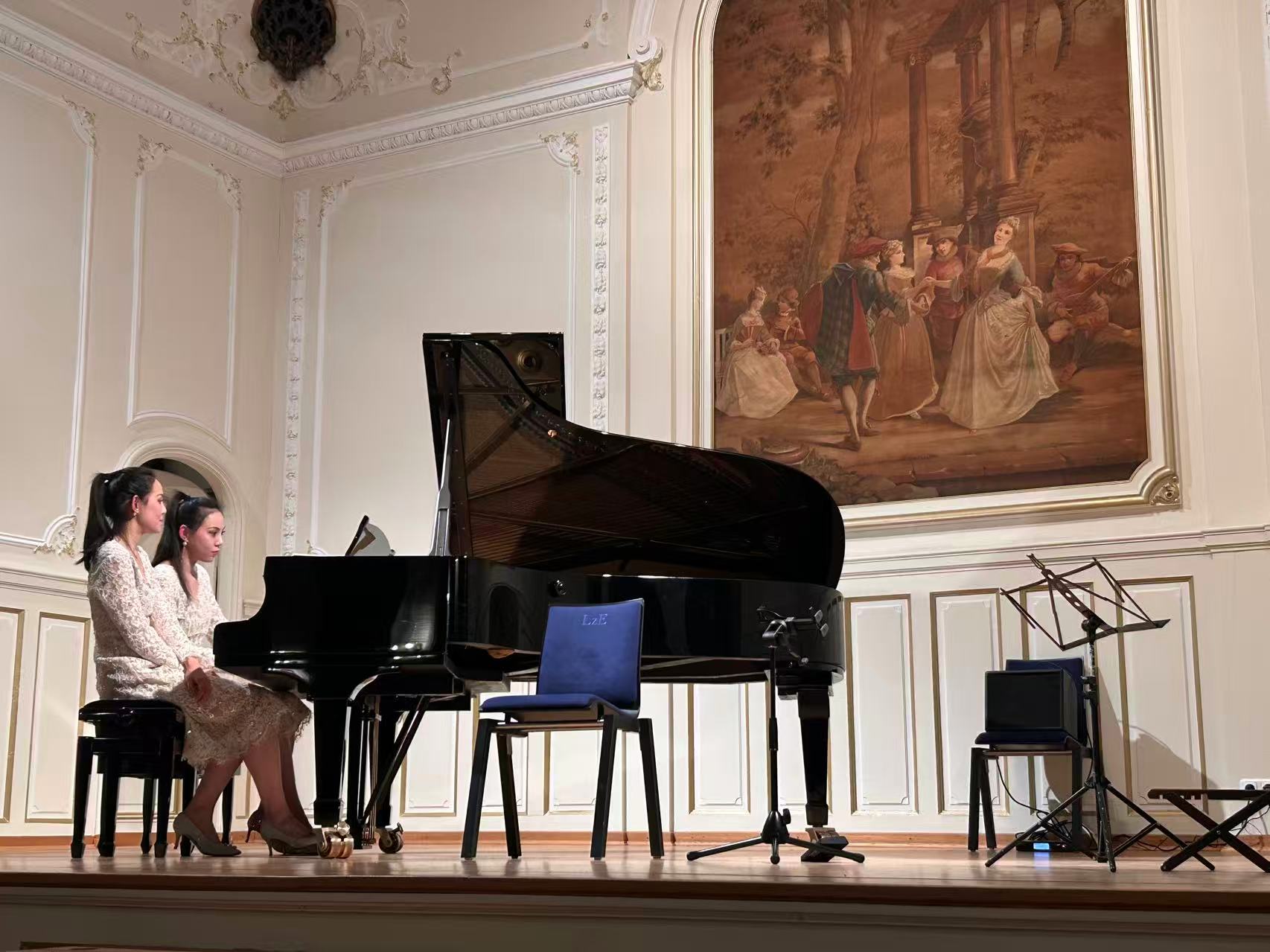 当天的音乐会由旅德青年音乐家唐氏姐妹二重奏Duo Tang与德国世界音乐组合Crescent Moon联袂呈现。两支乐团分别以西方古典钢琴曲与富有中国特色的民乐为特色,精心演绎了风格多元、内涵丰富的中西方经典曲目,在优美的旋律中搭建起中德文化对话的桥梁,为现场观众带来一场跨时空的,兼具艺术性与感染力的视听盛宴。