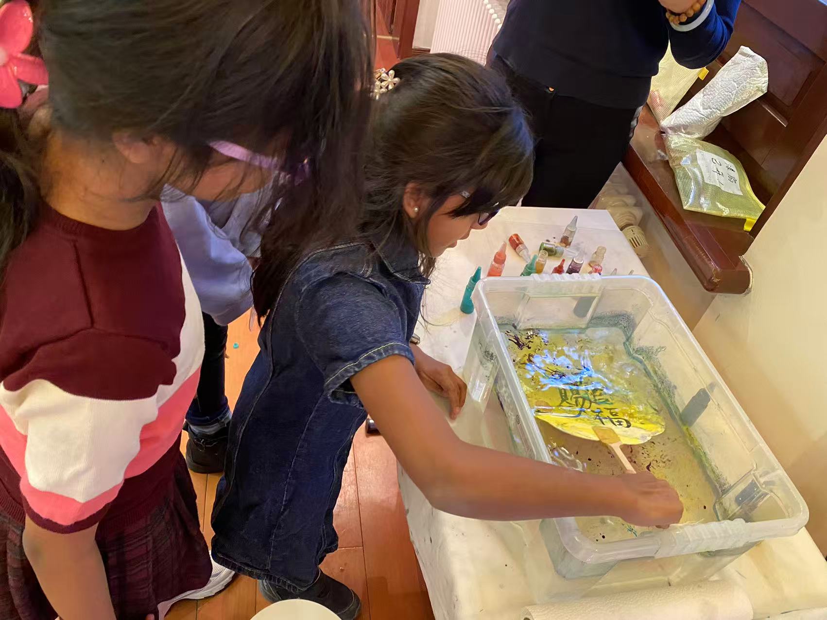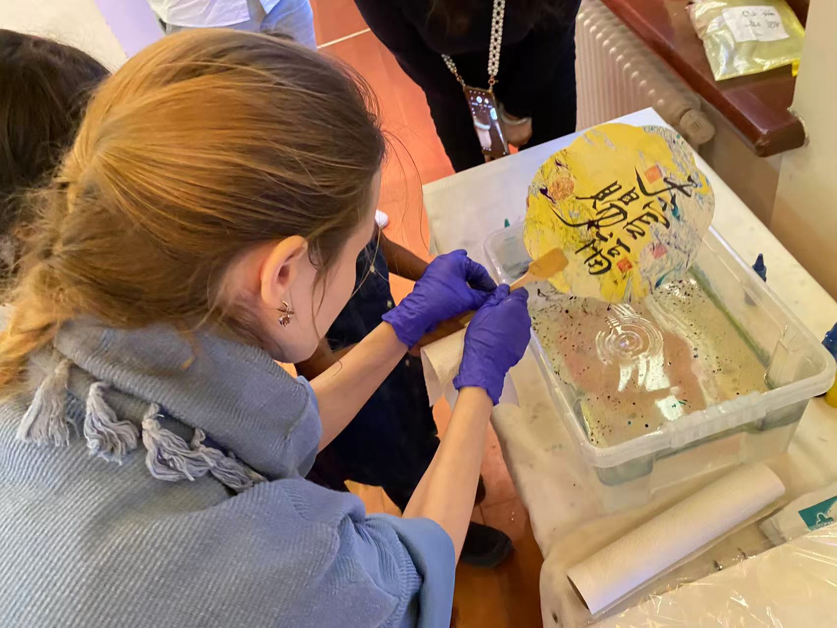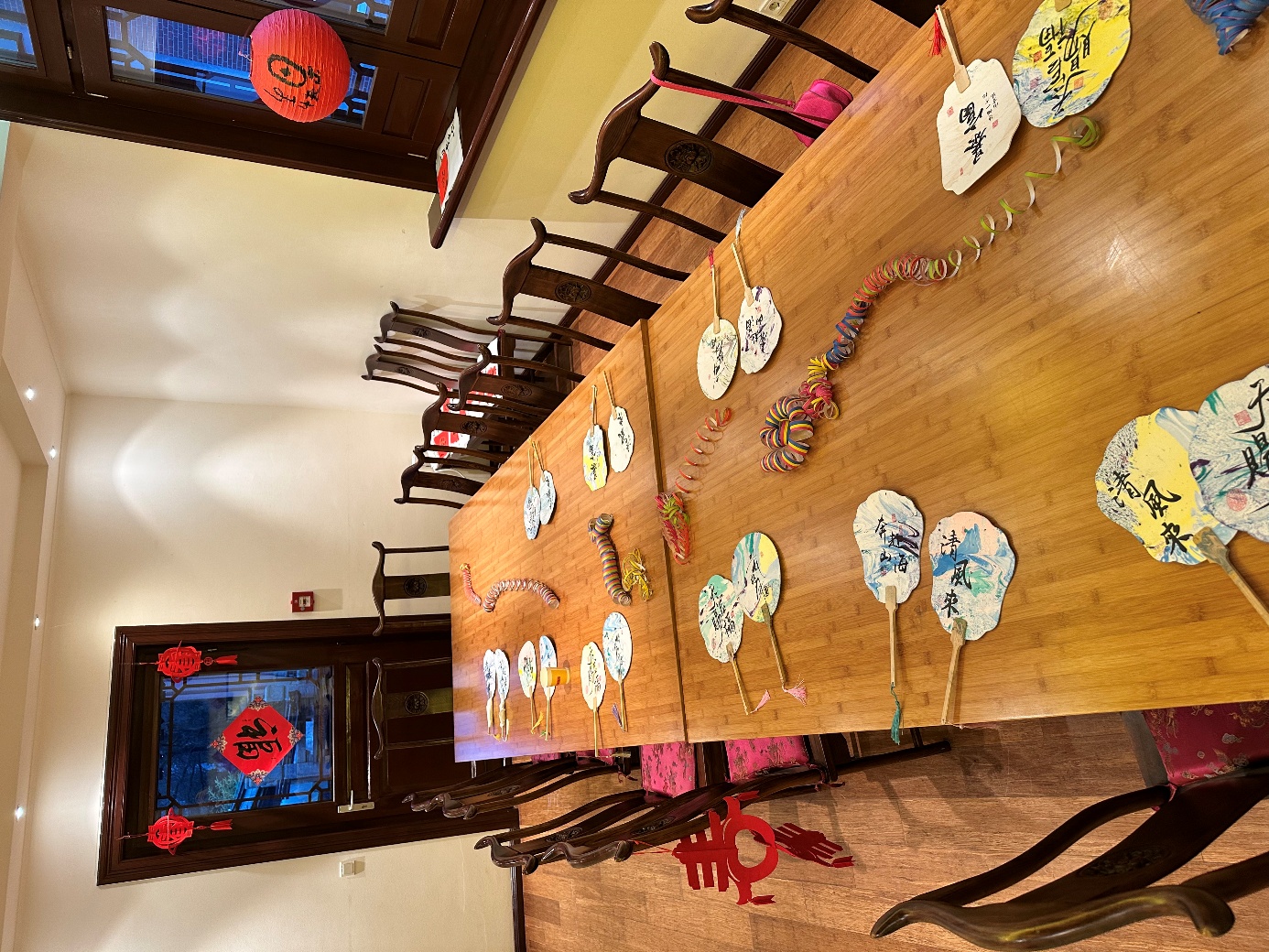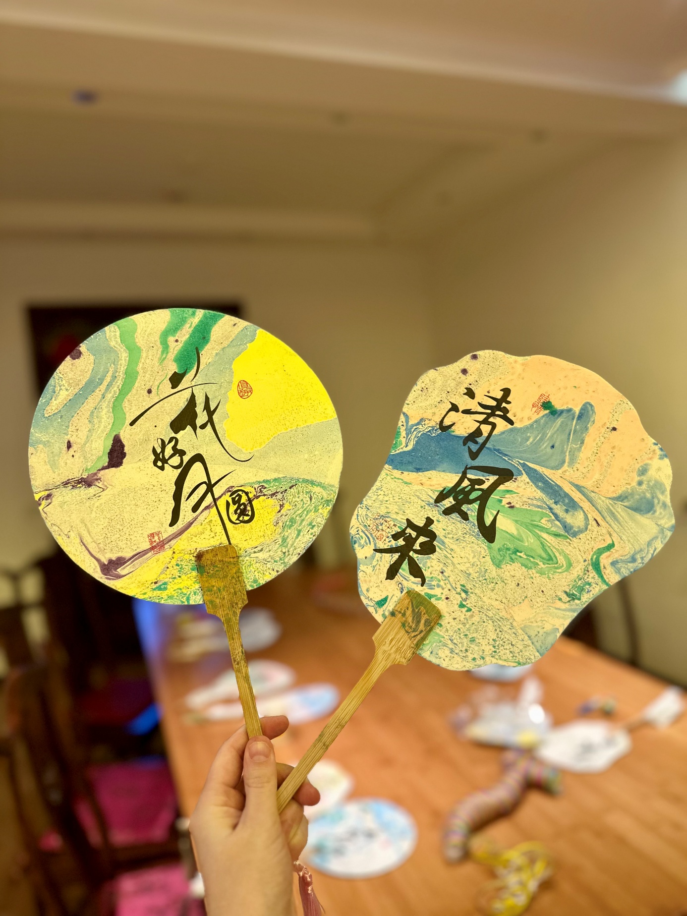 为了让孩子们进一步感受传统文化的魅力,孔院老师还精心准备了漆扇制作,将千年非遗技艺带入孩子们的生日派对中。老师介绍了漆扇的历史渊源与制作工艺,随后为孩子们分发空白扇面。孩子们自主选择色调,发挥想象力与创造力,制作出自己的非遗漆扇。每一把扇子都独一无二,承载着孩子们的巧思与热爱。