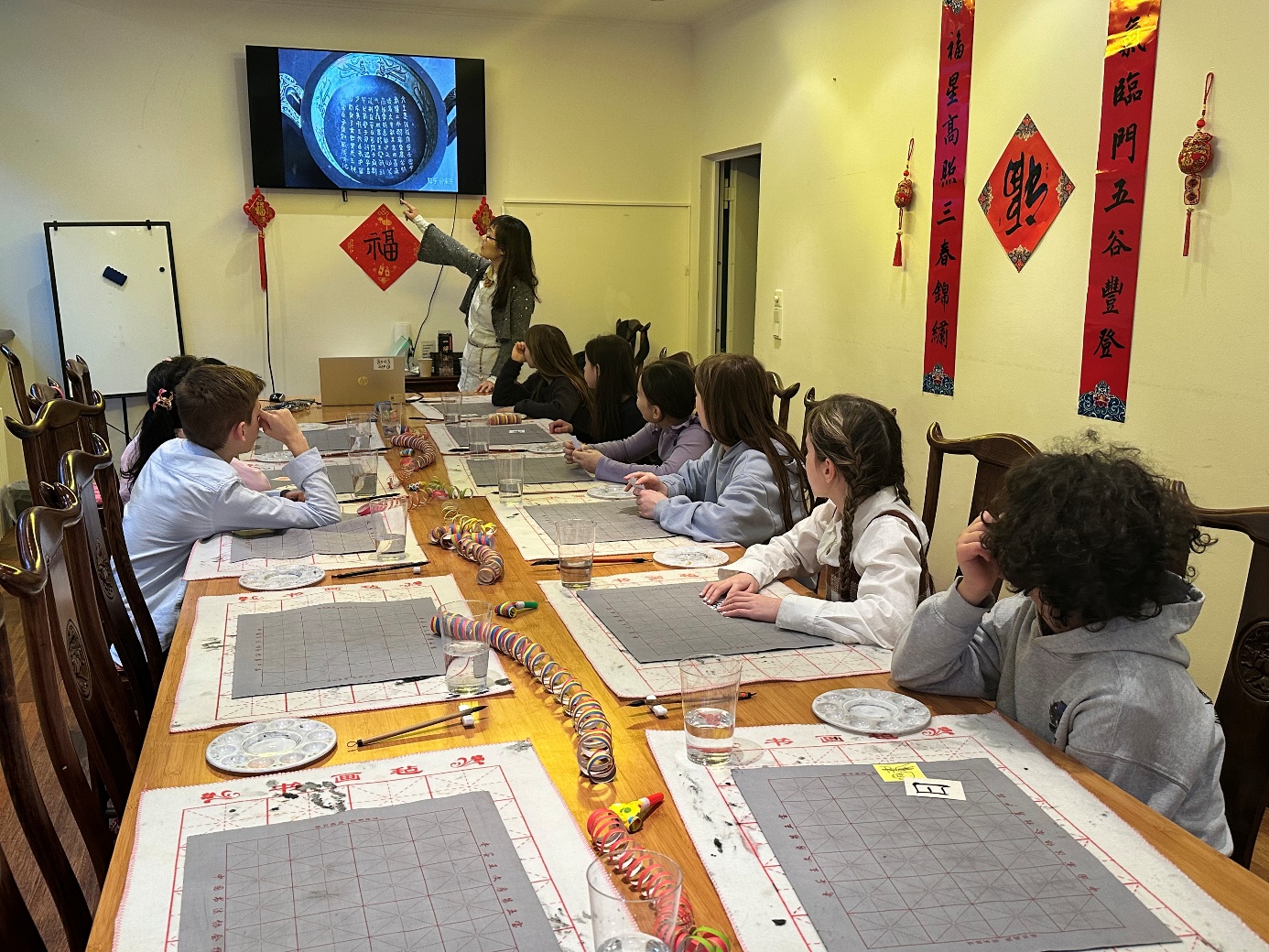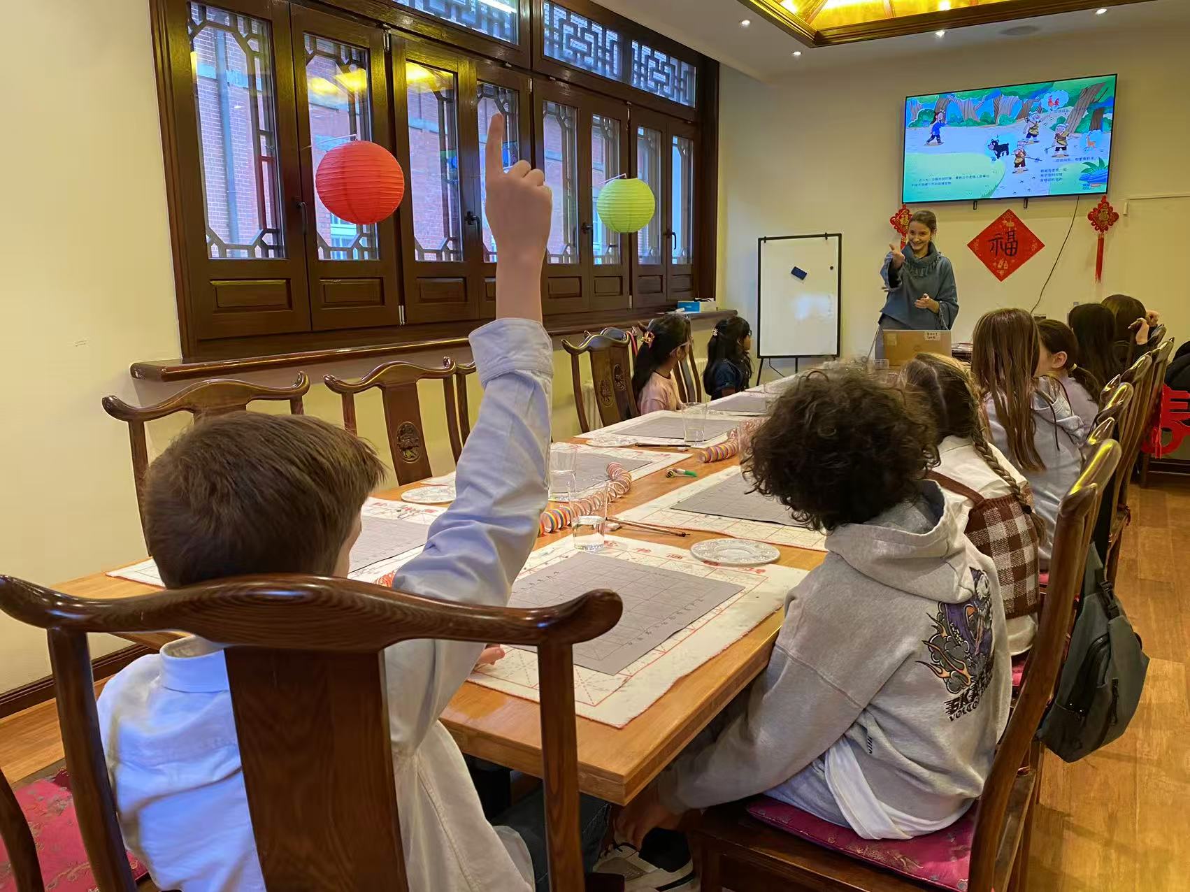 本次生日派对以“中国传统文化”为主题,每一个环节都精心设计,让孩子们在欢乐中感受中国的文化与魅力。活动伊始,孔院老师用生动有趣的语言,为孩子们讲述了仓颉造字的传说。孩子们听得聚精会神,不时发出好奇的提问。