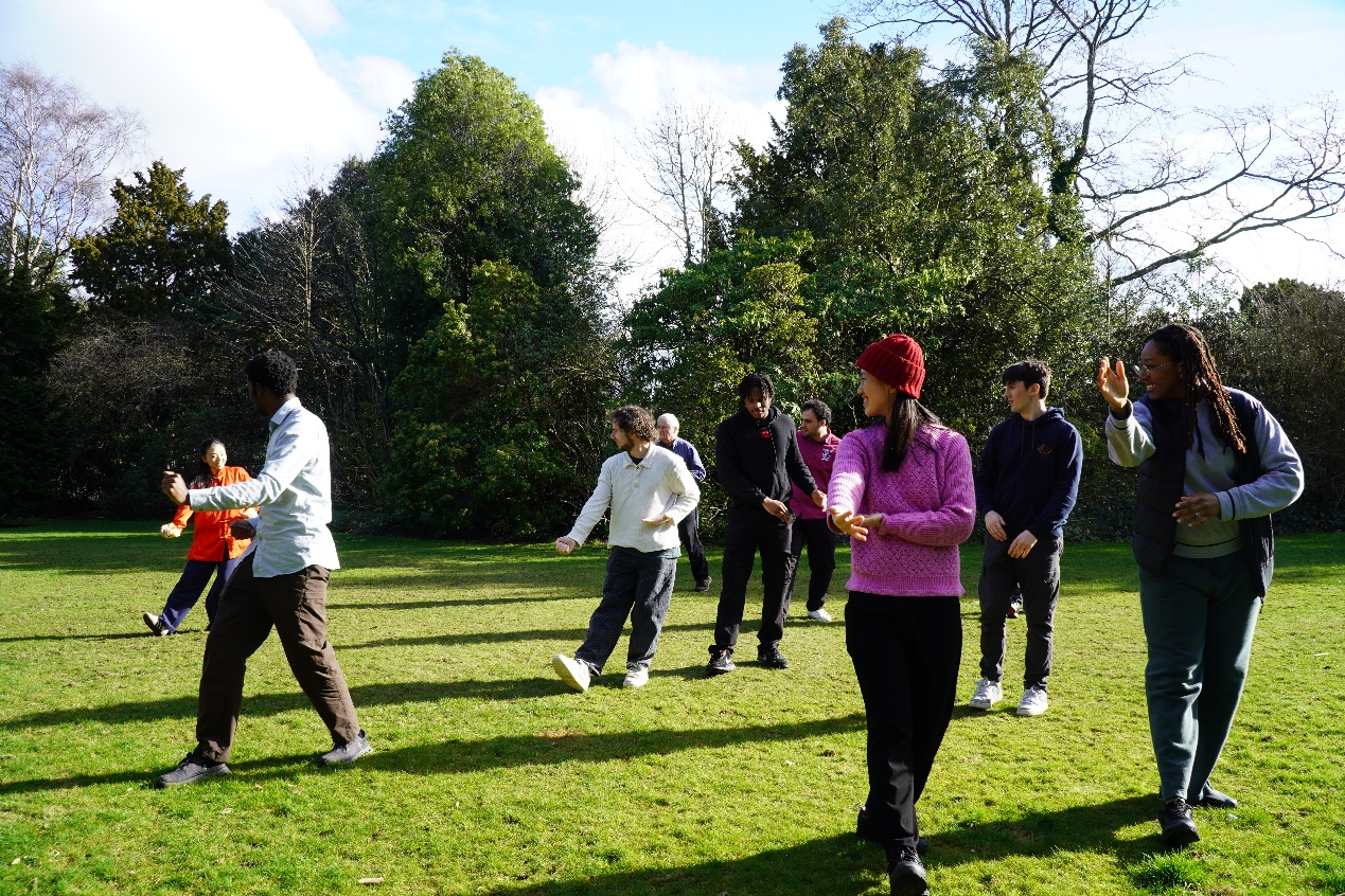 在孔子学院的花园里,邬佳芮老师带领太极爱好者体验太极招式。从野马分鬃到白鹤亮翅,参与者在一招一式中体会“刚柔并济、阴阳相济”的太极哲学。来自不同国家的朋友用身体语言完成了一场无需翻译的对话,深刻感受中国传统智慧的魅力。