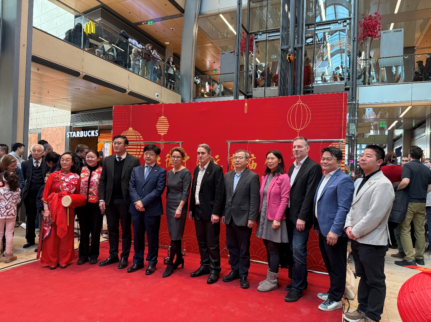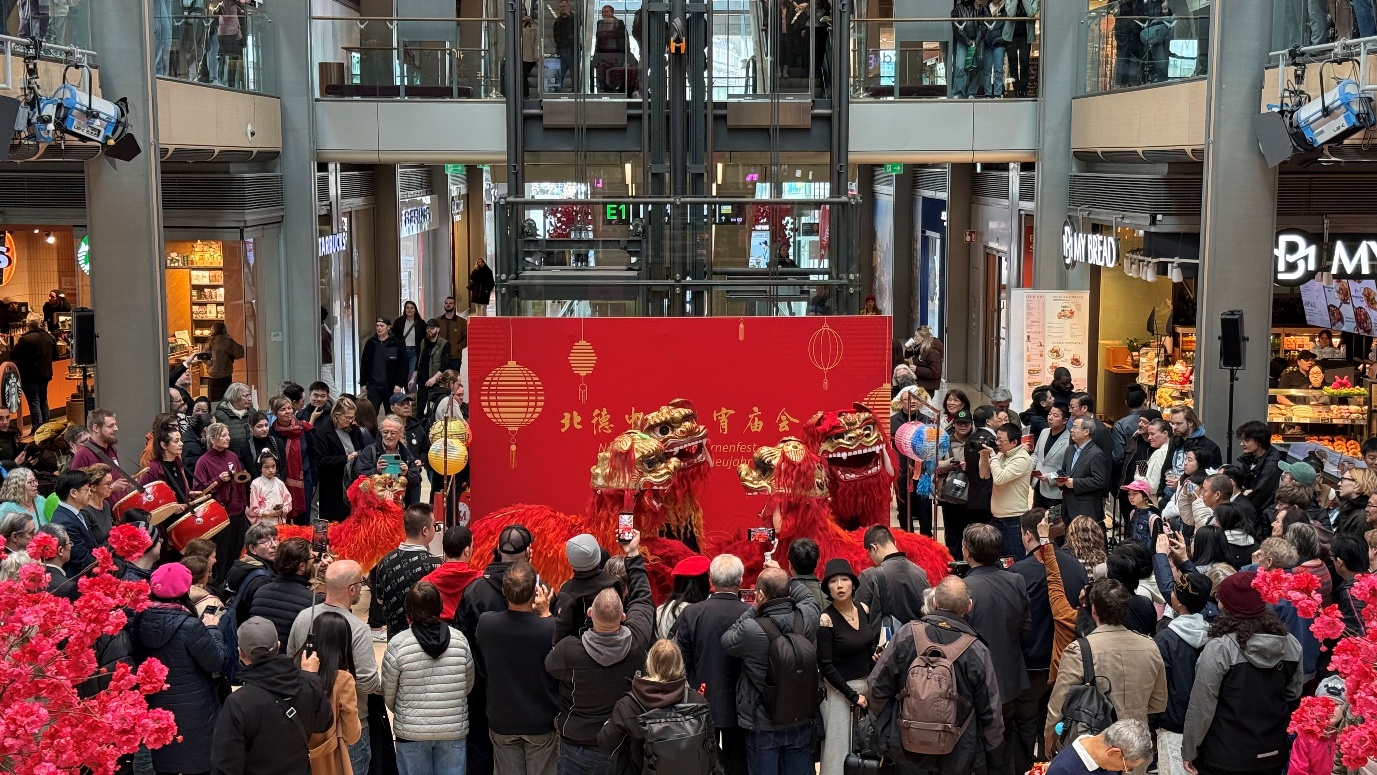 2026年2月28日农历正月十二,汉堡市中心欧洲购物中心广场(Europa Passage)张灯结彩、人潮涌动,首届北德中国元宵庙会在欢腾的舞狮中拉开帷幕。作为本次活动的重要参与方,汉堡孔子学院不仅精心组织了第十五届生肖主题的元宵花灯制作比赛,在此次活动中进行了颁奖仪式,更以丰富多彩的文化互动活动,为德国民众提供了感受中国文化的机会。