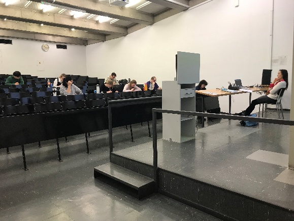 为了确保考试顺利进行,孔子学院提前几天为监考人员开展了考前培训,特别是为新参加监考工作的人员提供支持和帮助。考试当天早上,孔子学院的工作人员提前两小时就到达考试现场布置考场和调试相关设备,严格按照HSK考试规程做好各项考前准备工作。在法兰克福大学教学大楼内,分设了HSK笔试和HSKK口语考场,将各级别考试分为上午和下午错开进行,为考生提供了一个安静、舒适的考试环境。在整个考试过程中,工作人员都保持高度负责的态度实施了每一个监考环节,从而确保了全天HSK和HSKK考试有条不紊、顺利开展。