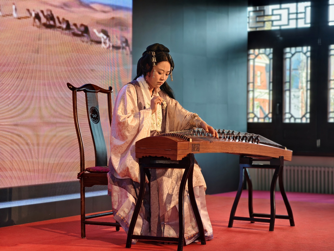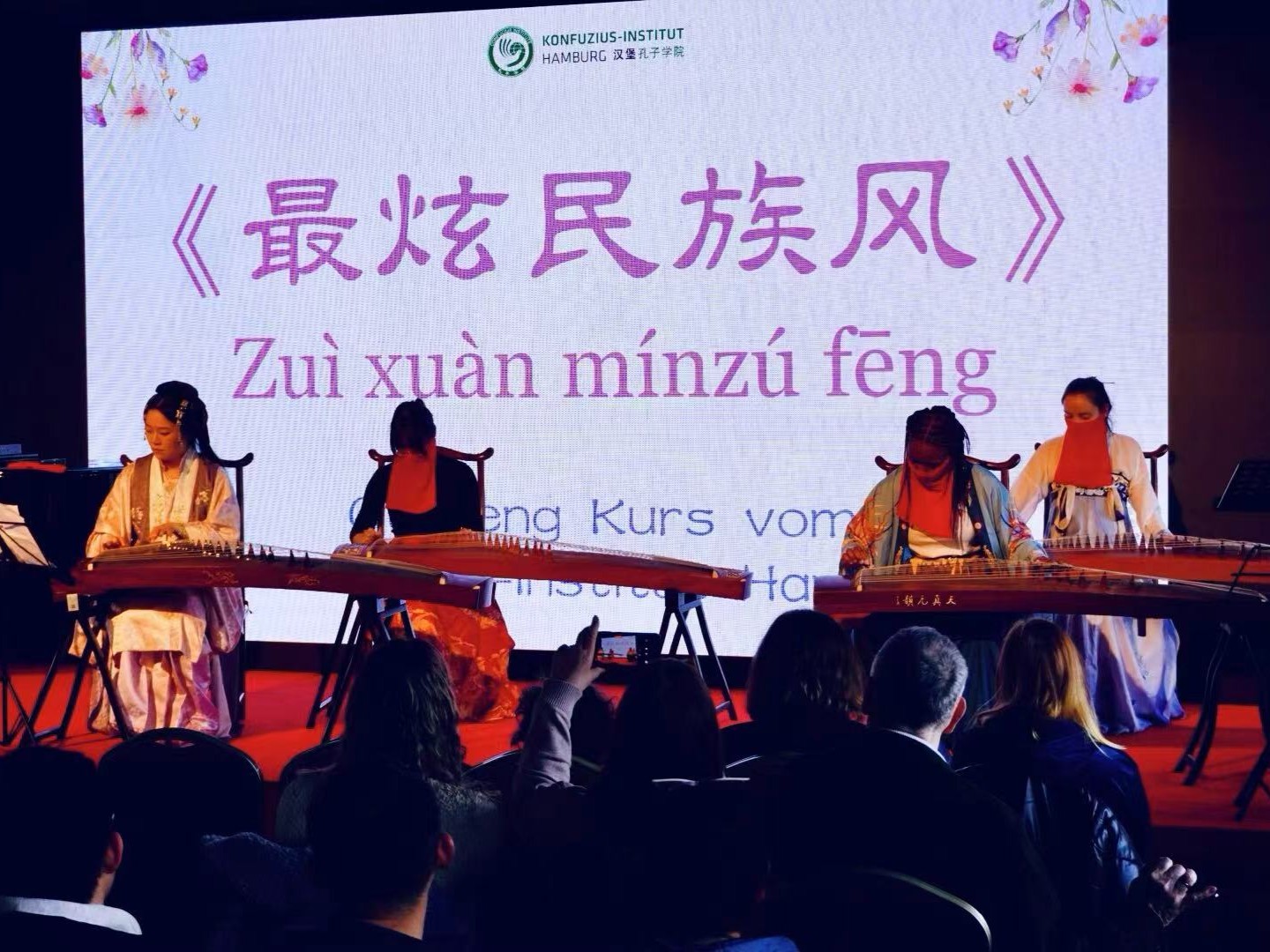 汉堡孔子学院古筝班的学员们,在老师的带领下,勇敢地登上舞台,演奏了《彩云追月》和《最炫民族风》。随后古筝与二胡齐登场,用清音雅韵演绎了传统与经典,将中国乐器的秀美与灵动表现得细腻动人。