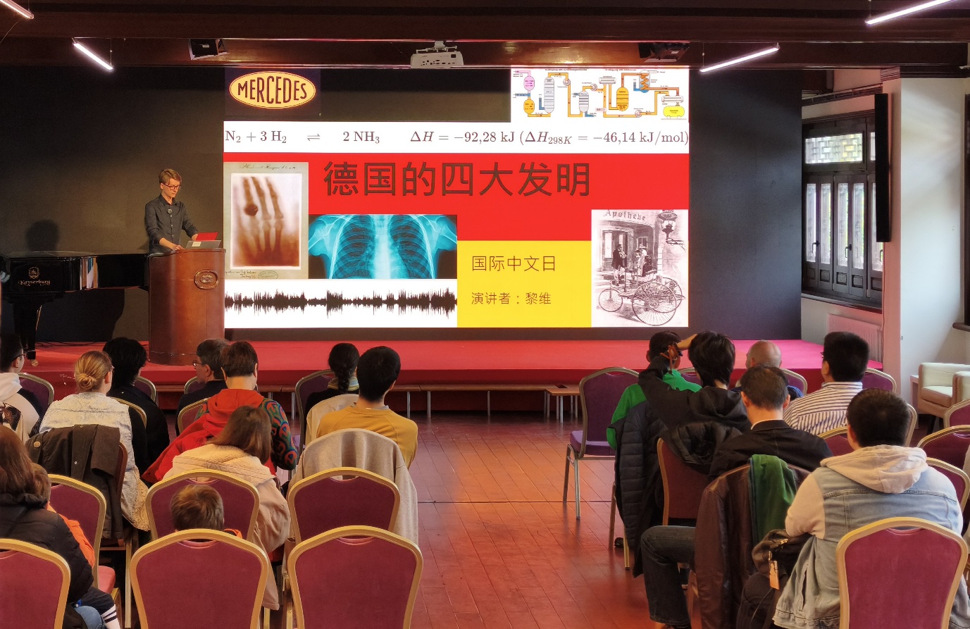 最后,来自德国的Levi从德国“四大发明”切入,并巧妙地与中国古代和现代“四大发明”进行对比,展现了工业文明与东方智慧的奇妙交汇,并介绍了自己的家乡新明斯特。演讲过程中,Levi各种成语和中文热梗信手拈来,看着这位德国小伙用地道的中文侃侃而谈,现场观众纷纷竖起大拇指:“这中文水平,太‘溜’了!”