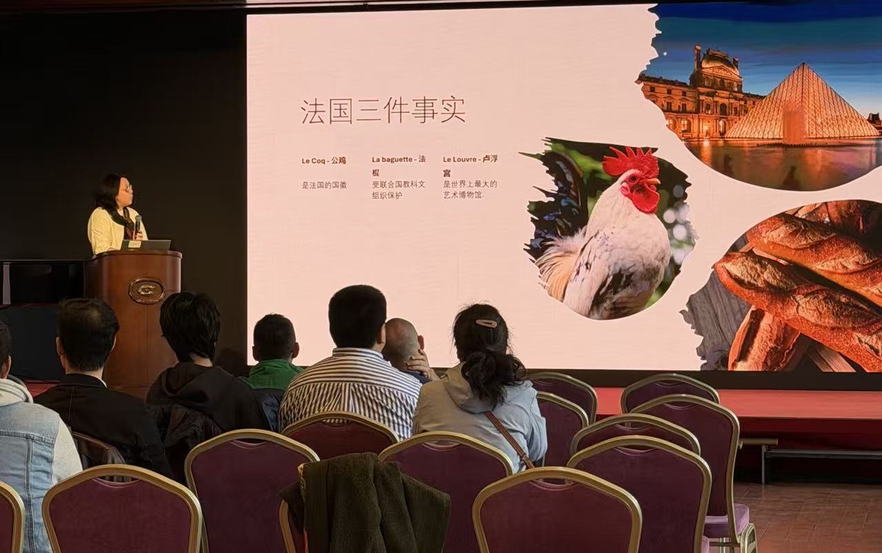 随后, Louisa以法国的三大象征——高卢雄鸡、法棍面包和卢浮宫为切入点,带大家领略了法兰西的优雅。Louisa 重点推荐了自己的故乡布列塔尼,那里神秘的历史遗迹与壮丽的自然风光令人神往。Louisa 还特意带来了家乡的特产苹果酒,邀请大家共饮,四溢的酒香、地道的风味引得现场观众赞叹不已。