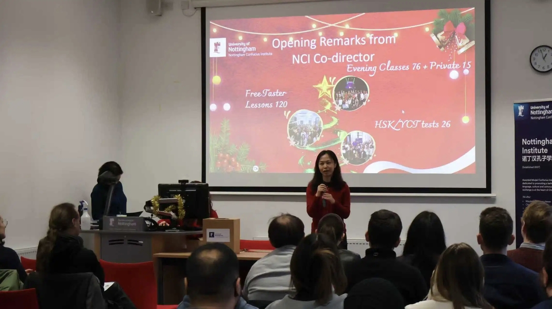 On Saturday 6 December, the Nottingham Confucius Institute (NCI) brought a vibrant close to its Autumn term with a festive party. The event featured a delicious Chinese buffet lunch, student performances, interactive games, and award presentations, creating a warm and celebratory atmosphere for teachers and students to reflect on a successful term and welcome the future.